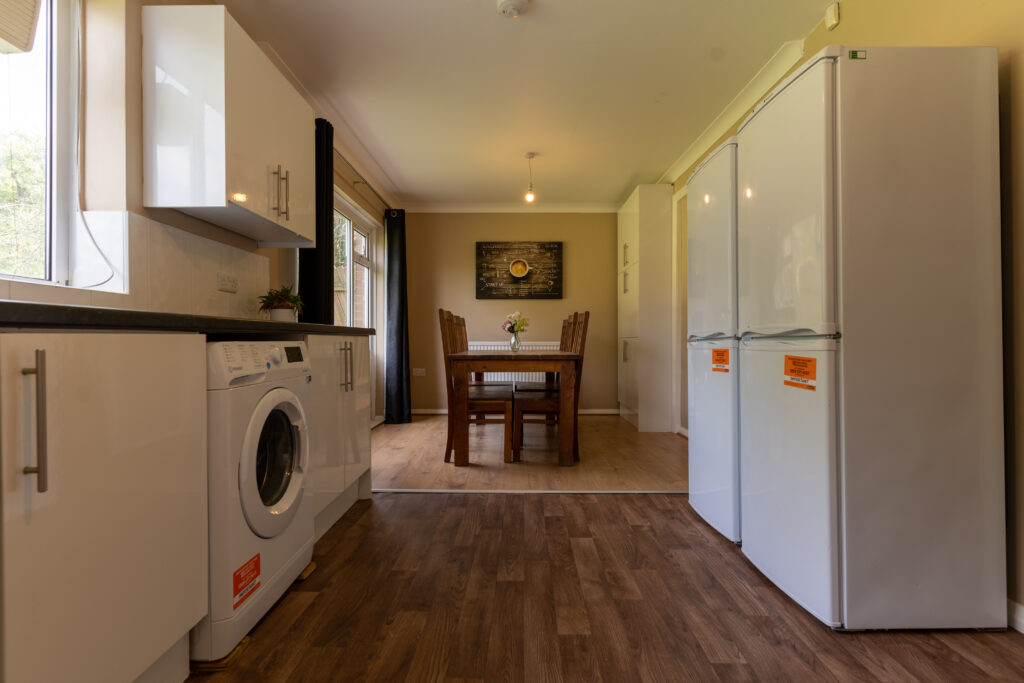 The property features seven double bedrooms, a large lounge, and a well-equipped kitchen with two fridge freezers, a washing machine and a clothes dryer. With four showers, a bath and five toilets, it is ideal for larger student groups.
