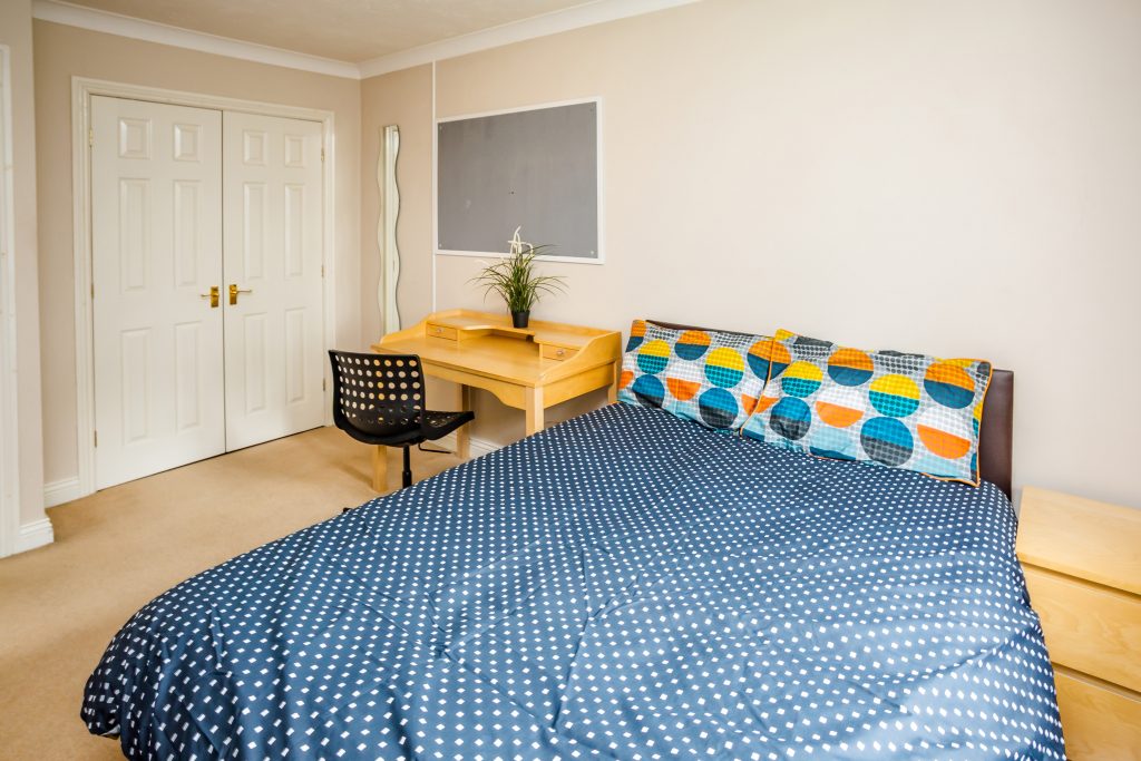 Desk & Chair, Double Bed, Wardrobe, Drawers, Mirror, Bookshelf